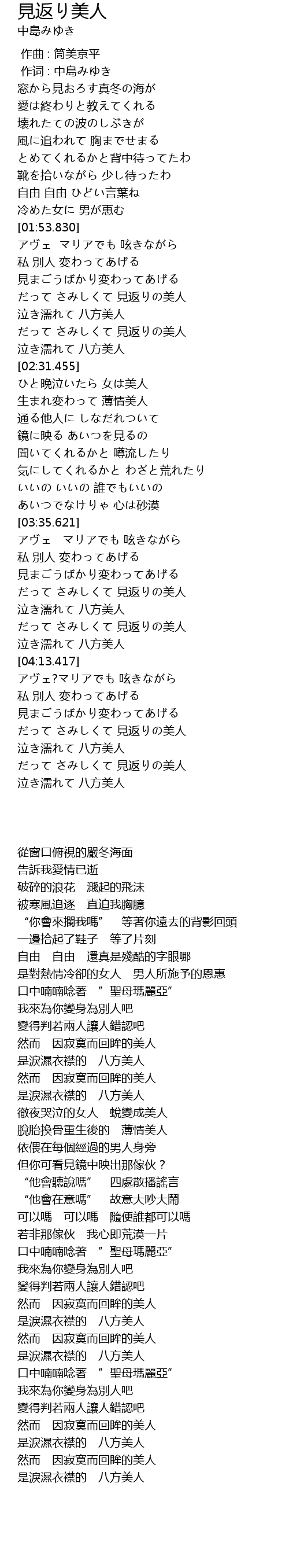 | [04:03.007] | だって さみしくて 見返りの美人 |