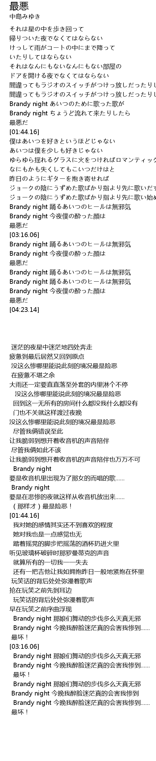 | [03:39.23] | Brandy night 踊るあいつのヒールは無邪気 |