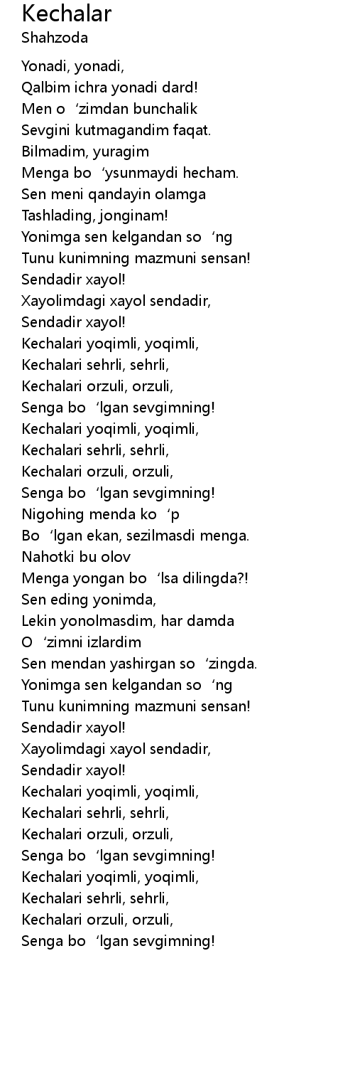 | Kechalari yoqimli, yoqimli, | |