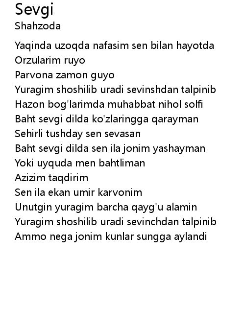 | Baht sevgi dilda sen ila jonim yashayman | |