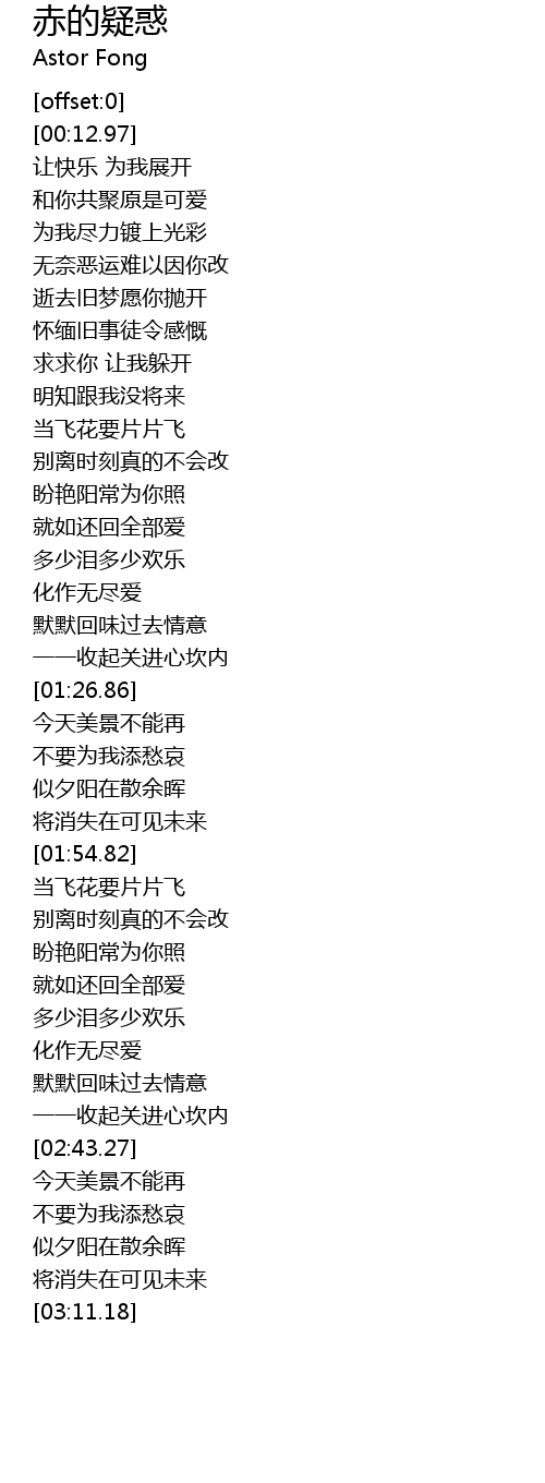 | [02:15.56] | dāng fēi huā yào piàn piàn fēi |