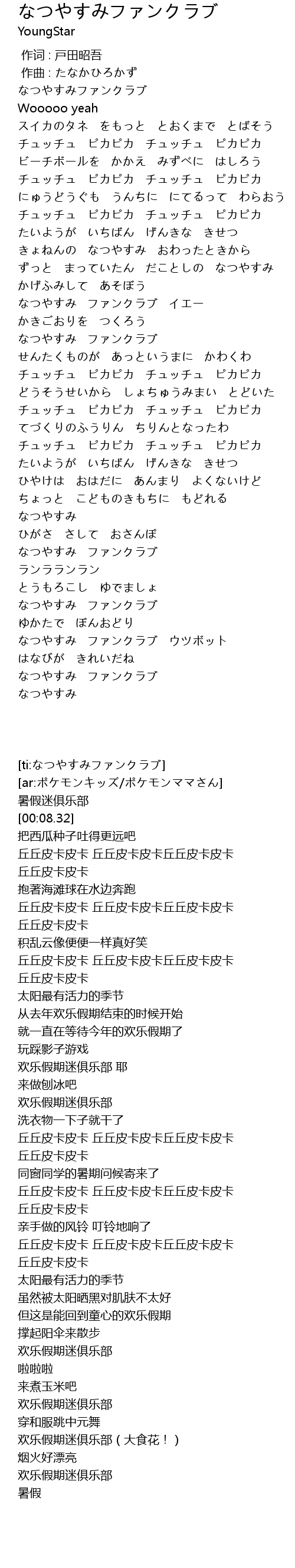 | [01:11.12] | なつやすみ ファンクラブ イエー |