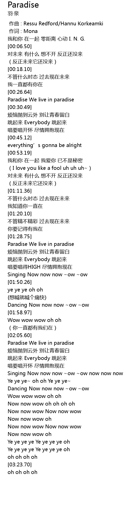 [02:22.63] Paradise We live in paradise