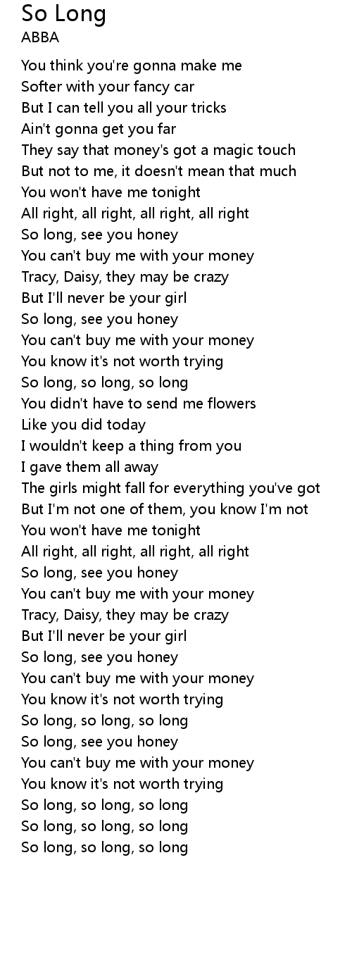 So long, so long, so long |
