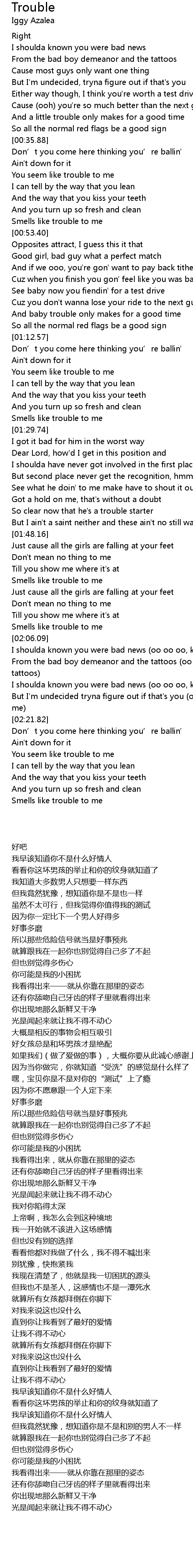 | [02:21.05] | But I' m undecided tryna figure out if that' s you oo oo oo, trouble to me |