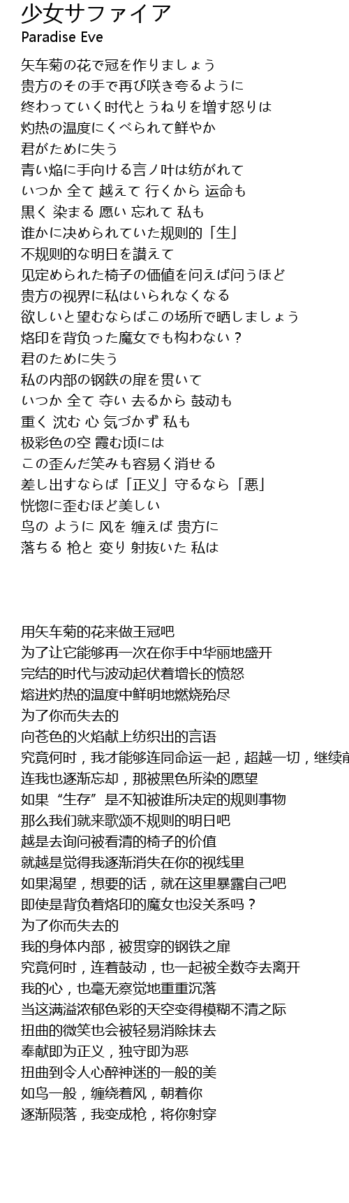 | [04:14.50] | 落ちる 枪と 変り 射抜いた 私は |