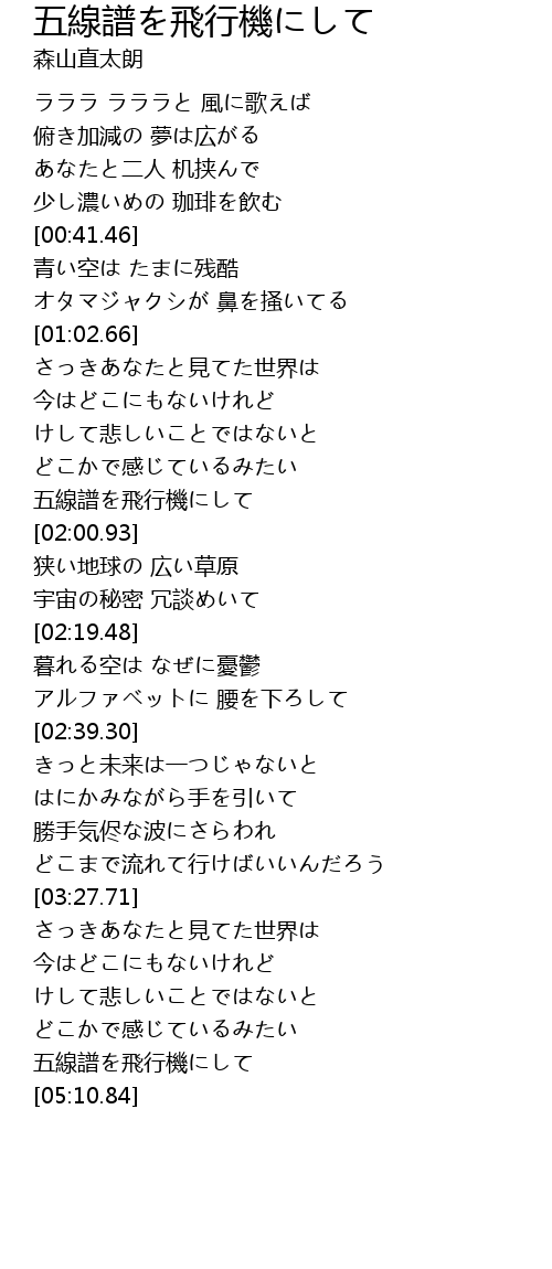 | [04:32.34] | wǔ xiàn pǔ fēi xíng jī |
