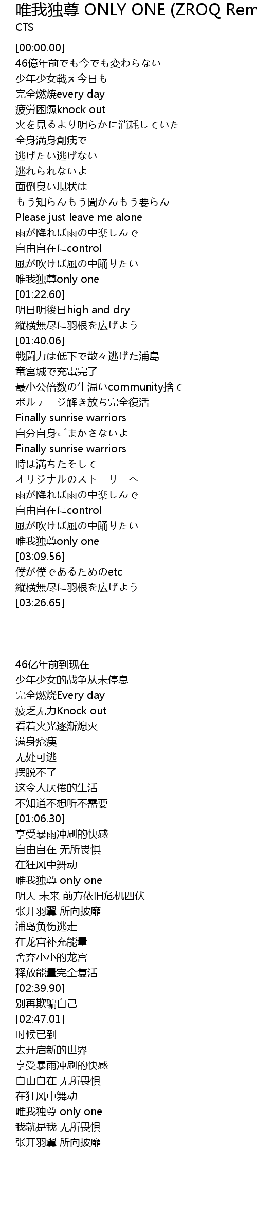 | [01:19.09] | wéi wǒ dú zūn only one |