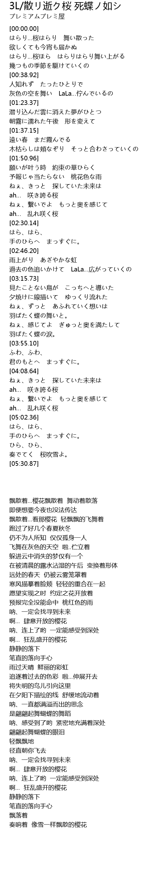 | [02:25.75] | ah… 乱れ咲く桜 |