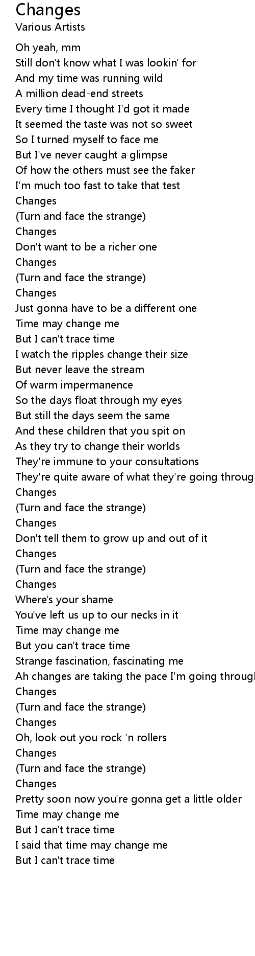 (Turn and face the strange) |