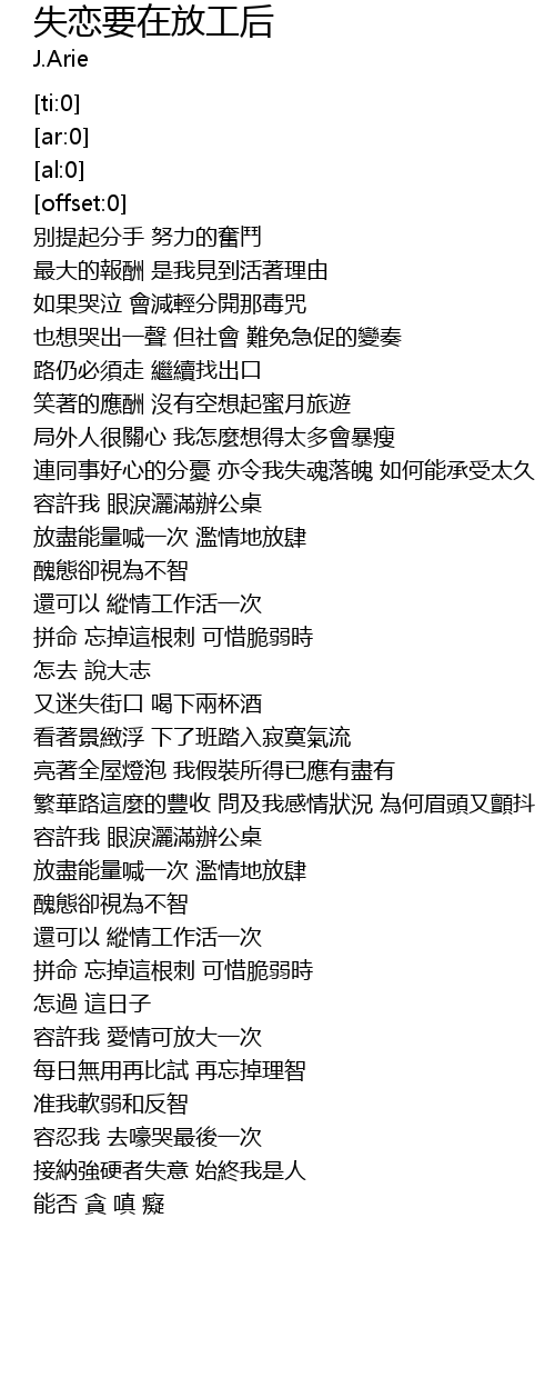 | Song | 失恋要在放工后 |