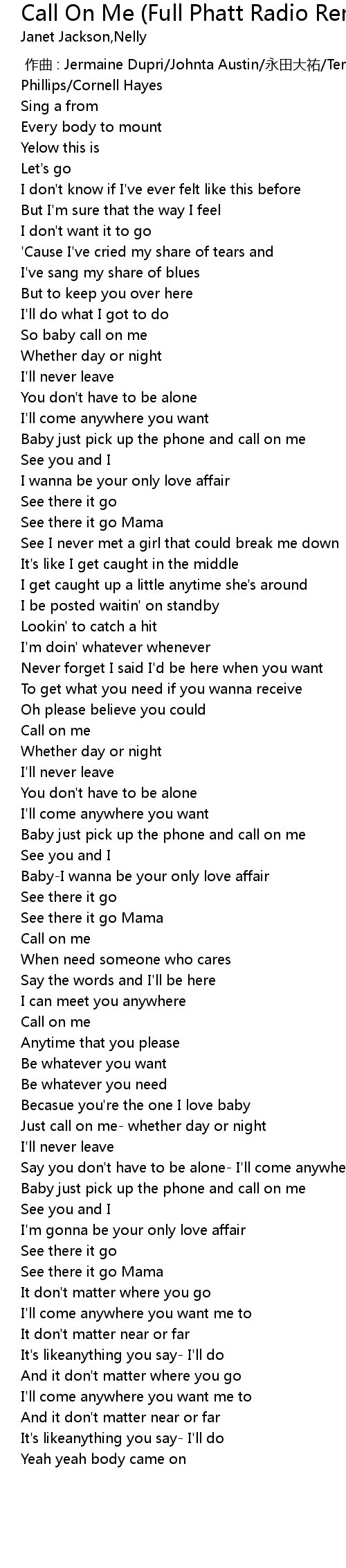 | [01:43.34] | Baby just pick up the phone and call on me |