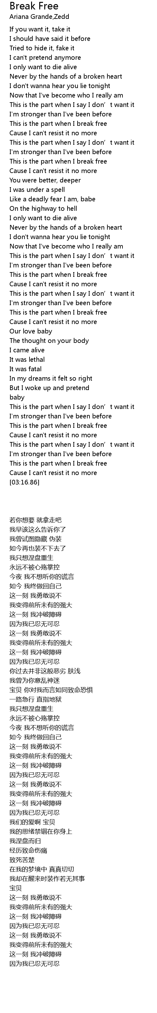 | [00:45.24] | This is the part when I break free |