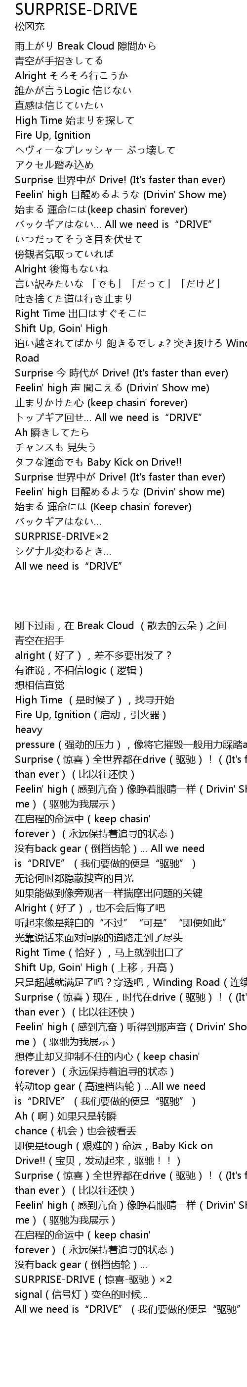 | [00:42] | Surprise 世界中が Drive! (It's faster than ever) |