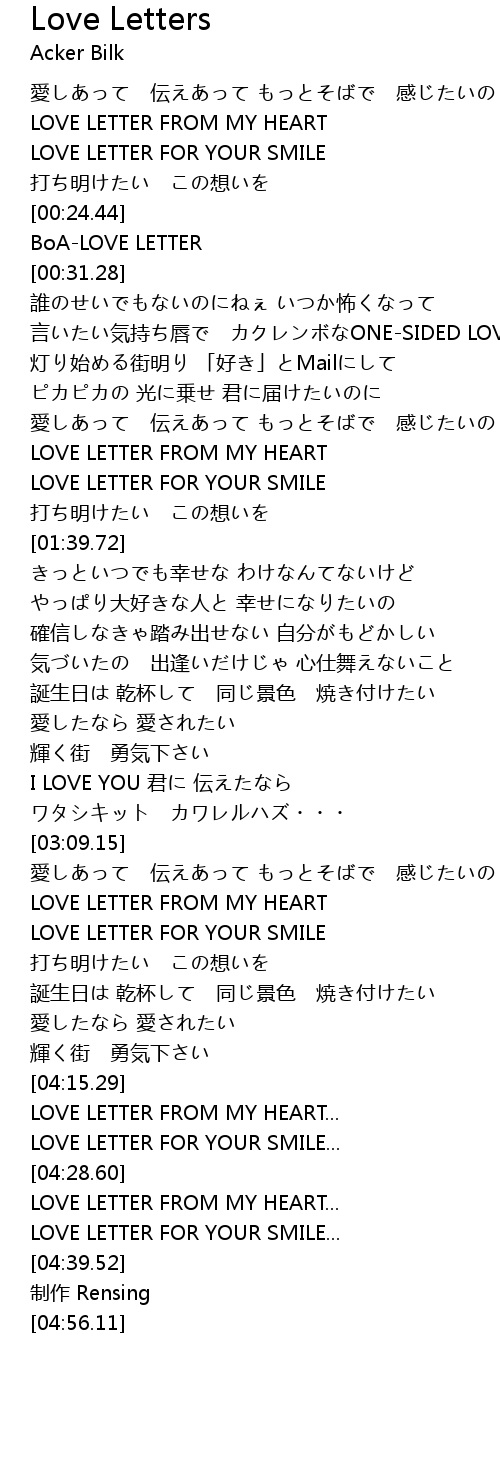 | [04:23.10] | LOVE LETTER FROM MY HEART... |