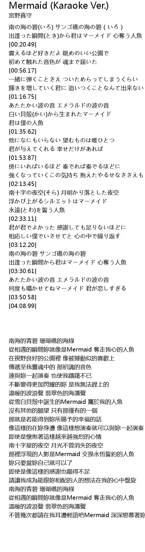 | [03:21.73] | 出逢った瞬間から君はマーメイド 心奪う人魚 |