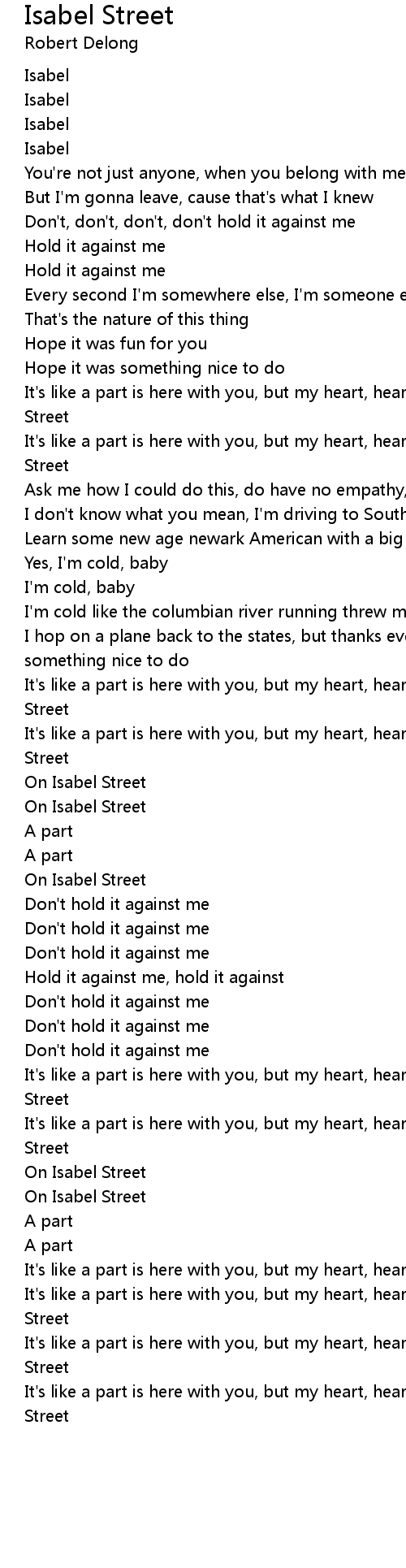 It's like a part is here with you, but my heart, heart, heart is on Isabel Street |