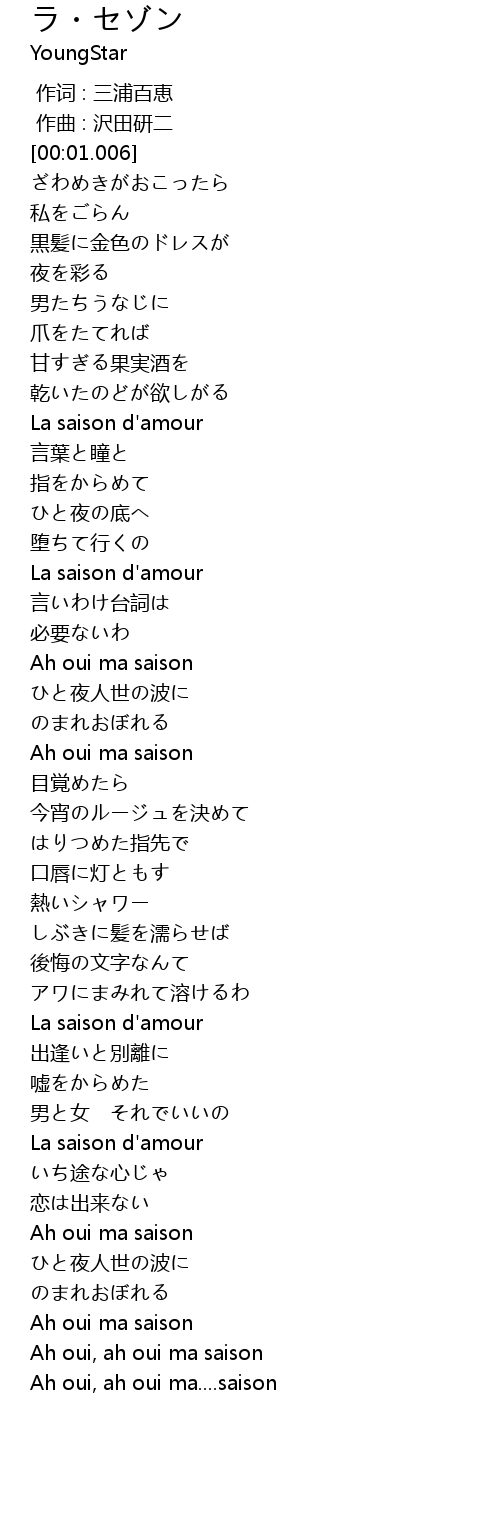 | [02:53.858] | Ah oui, ah oui ma‥‥saison |