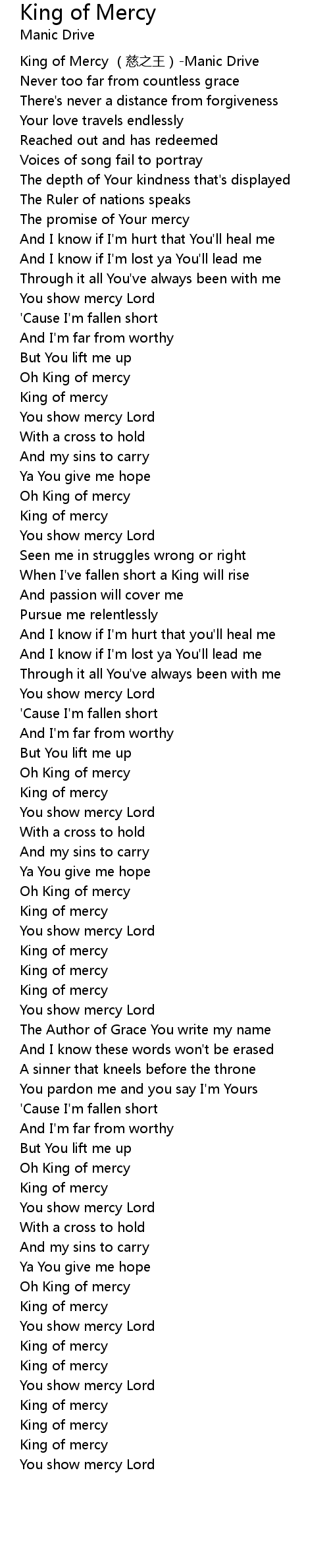 | [02:29.184] | King of mercy |
