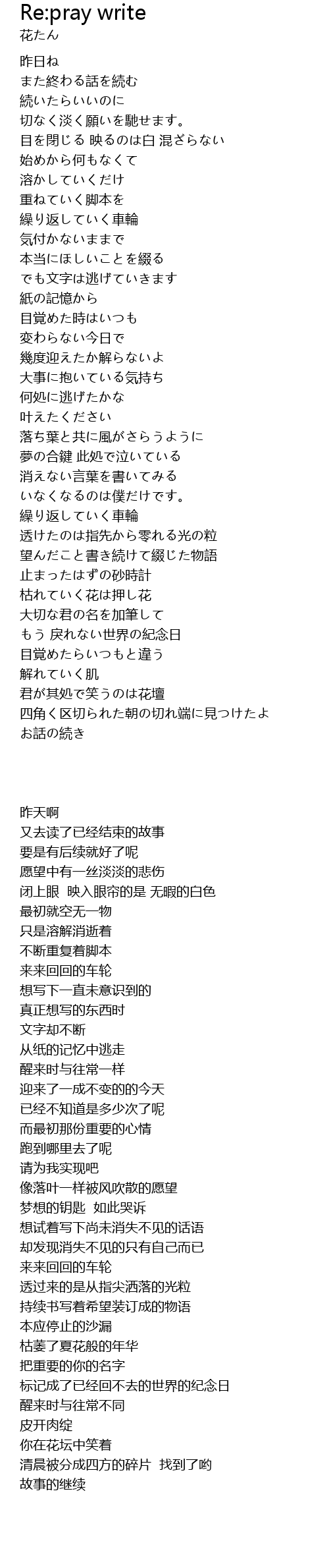 | Song | Re:pray write |