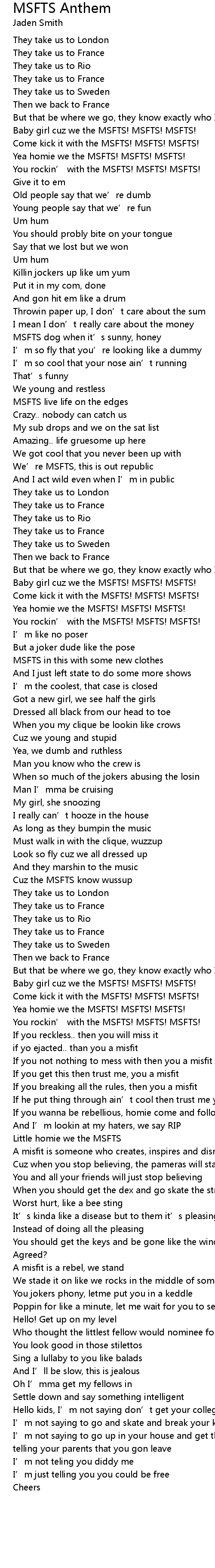 | Song | MSFTS Anthem |
