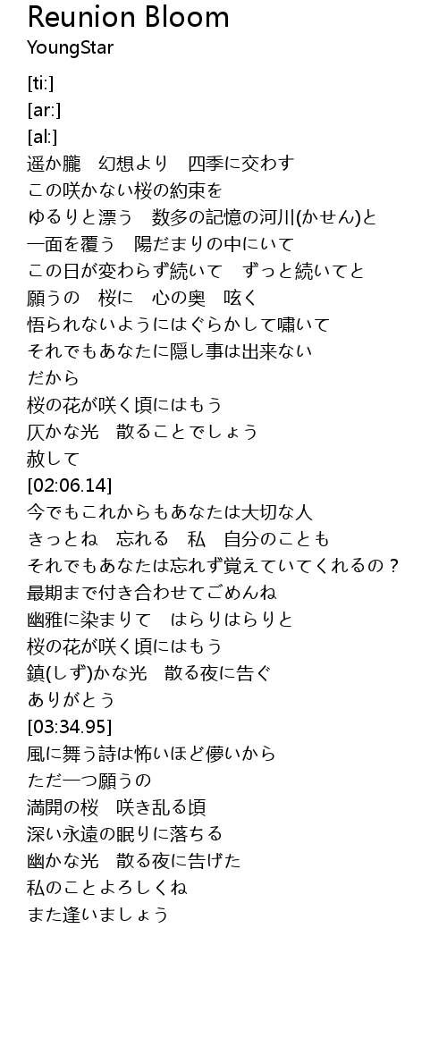 | [04:16.38] | 満開の桜 咲き乱る頃 |
