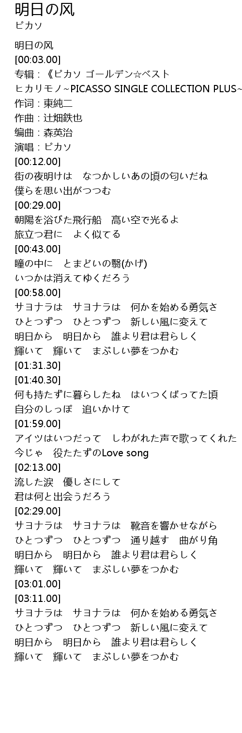 | [00:01.30] | 明日の风 |