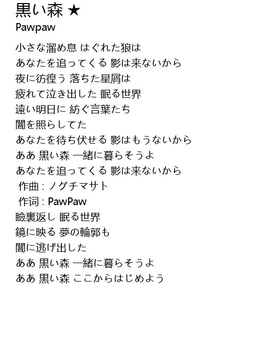 | [03:57] | ああ 黒い森 一緒に暮らそうよ |