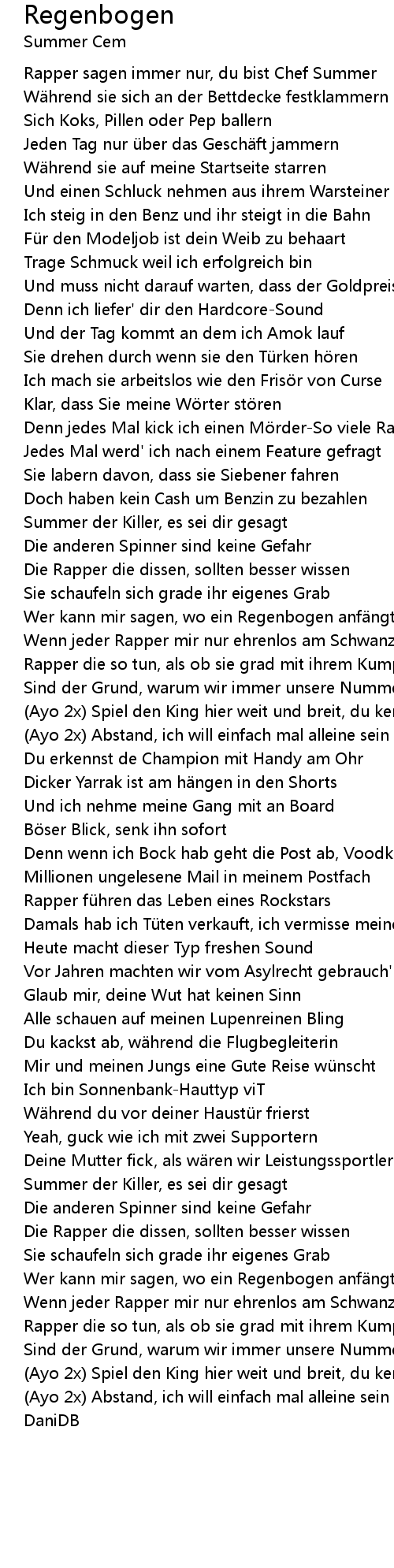 | Rapper sagen immer nur, du bist Chef Summer | |