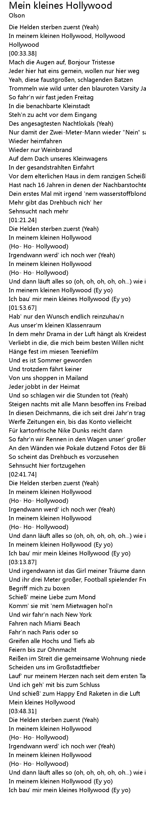 | [04:16.07] | Ich bau' mir mein kleines Hollywood (Ey yo) |