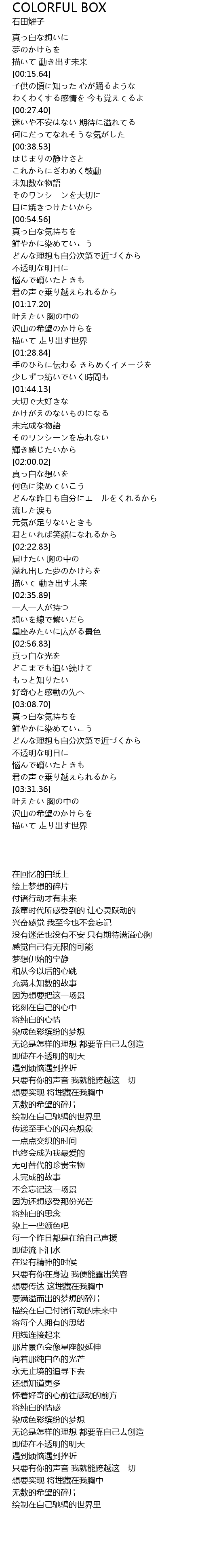 | [02:26.17] | 溢れ出した夢のかけらを |