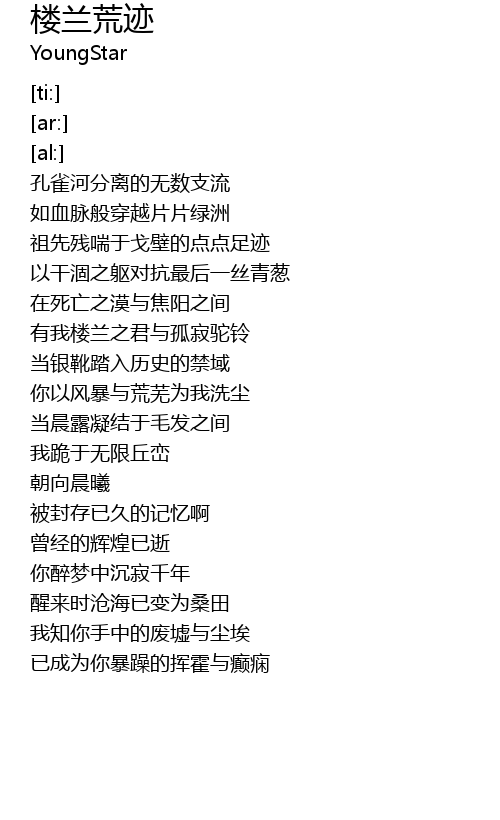 | [02:25.28] | 有我楼兰之君与孤寂驼铃 |
