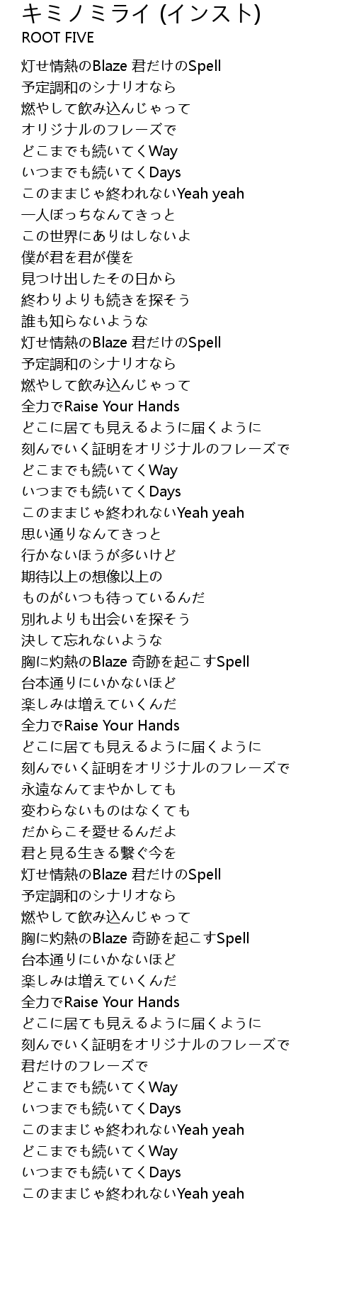 | [03:30.339] | 胸に灼熱のBlaze 奇跡を起こすSpell |