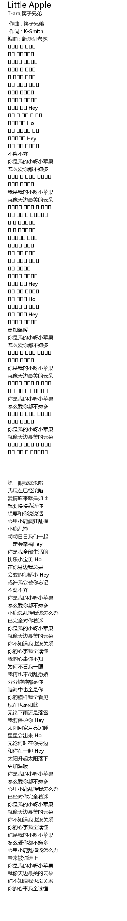| [00:49.330] | nǐ shì wǒ de xiǎo ya xiǎo píng guǒ |