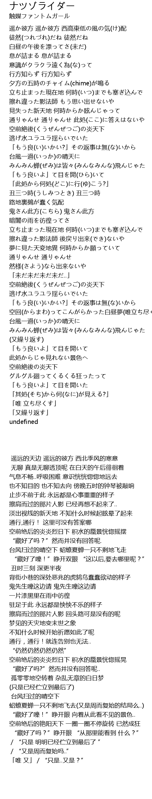 | Song | ナツゾライダー |