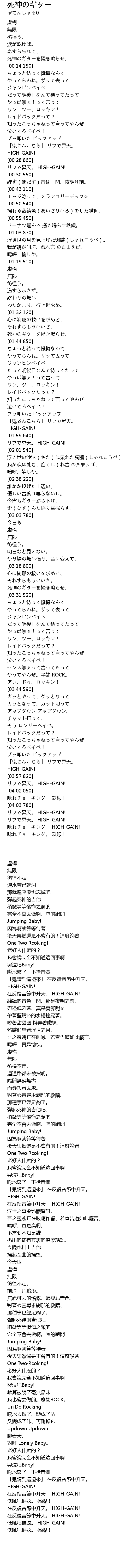 | [01:42.080] | 死神のギターを掻き鳴らせ。 |