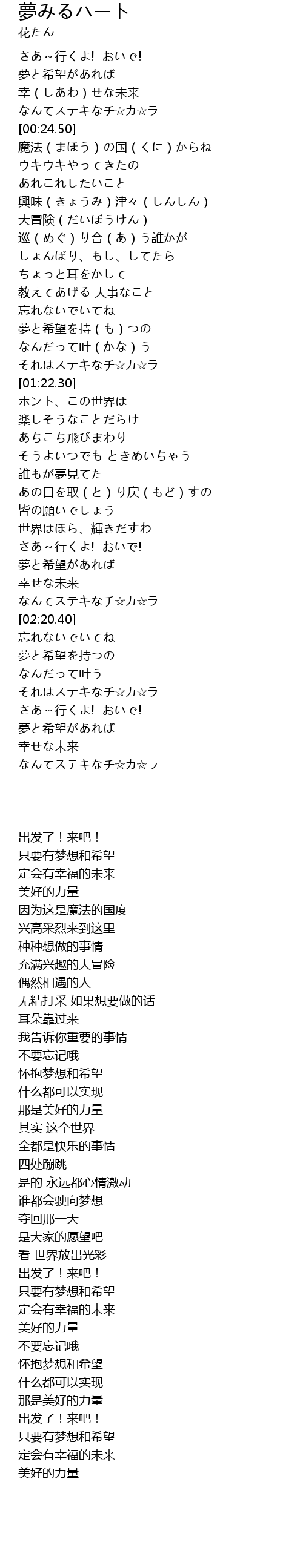 | [03:00.65] | それはステキなチ☆カ☆ラ |