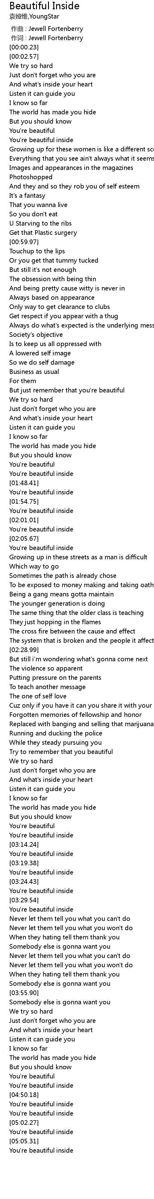 | [05:02.83] | You're beautiful inside |