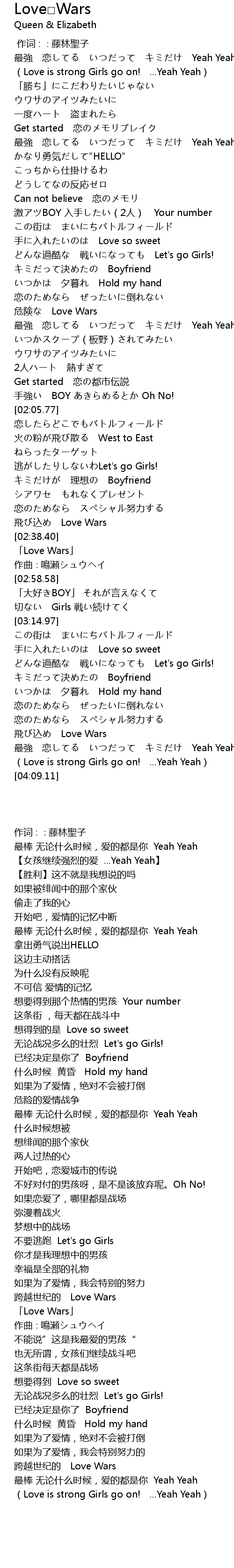 | [04:03.47] | (Love is strong Girls go on! ...Yeah Yeah) |