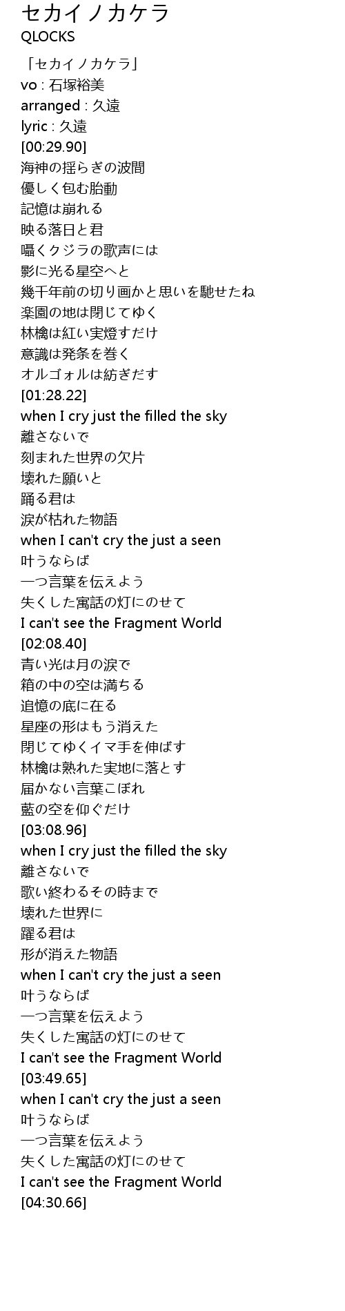 | [04:20.24] | 失くした寓話の灯にのせて |