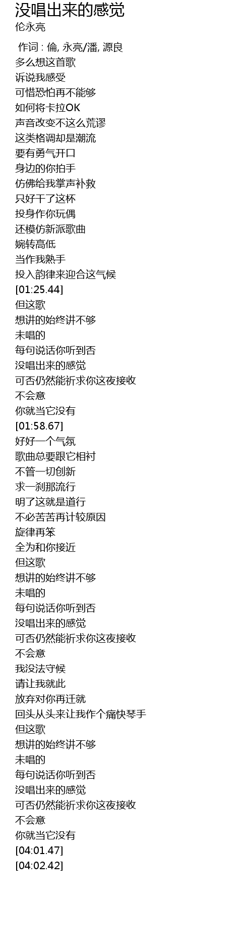 | [01:42.51] | méi chàng chū lái de gǎn jué |