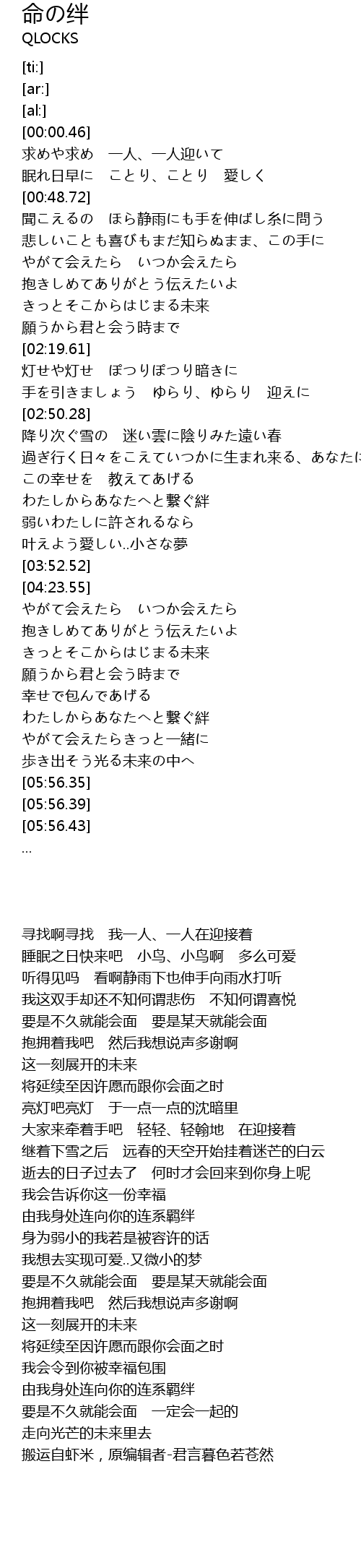 | [05:31.55] | わたしからあなたへと繋ぐ絆 |