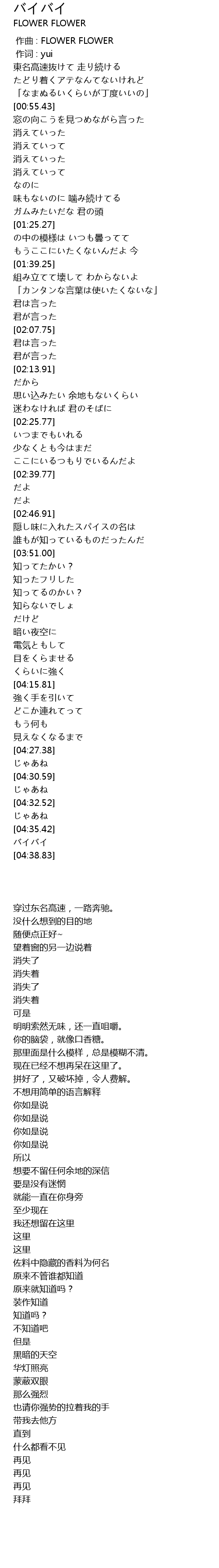 | [00:00.00] | zuo qu : FLOWER FLOWER |
