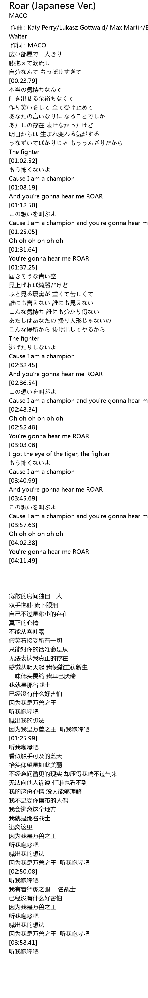 | [02:42.10] | Cause I am a champion and you're gonna hear me ROAR |