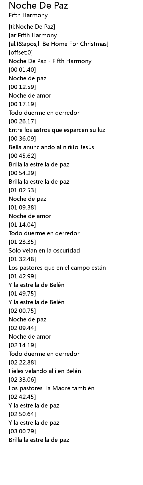 | [00:00.14] | Noche De Paz - Fifth Harmony |