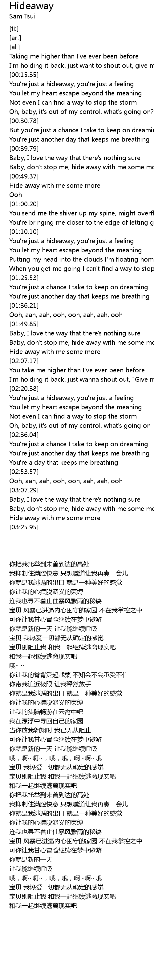 | [00:43.66] | Baby, don't stop me, hide away with me some more |