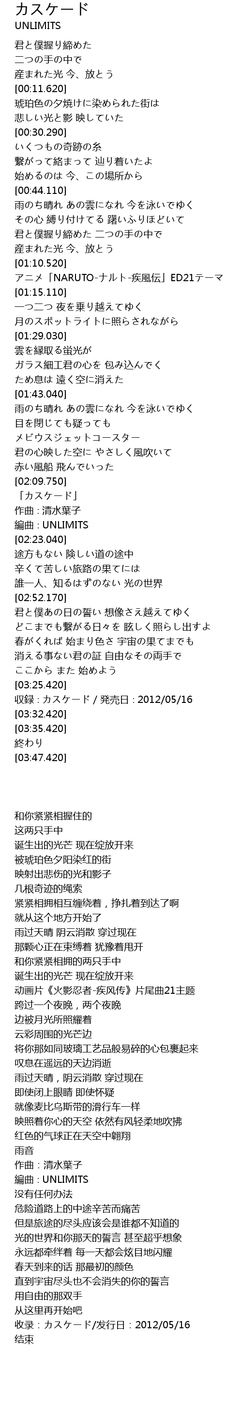 | [03:27.420] | 収録∶カスケード/発売日∶2012/05/16 |