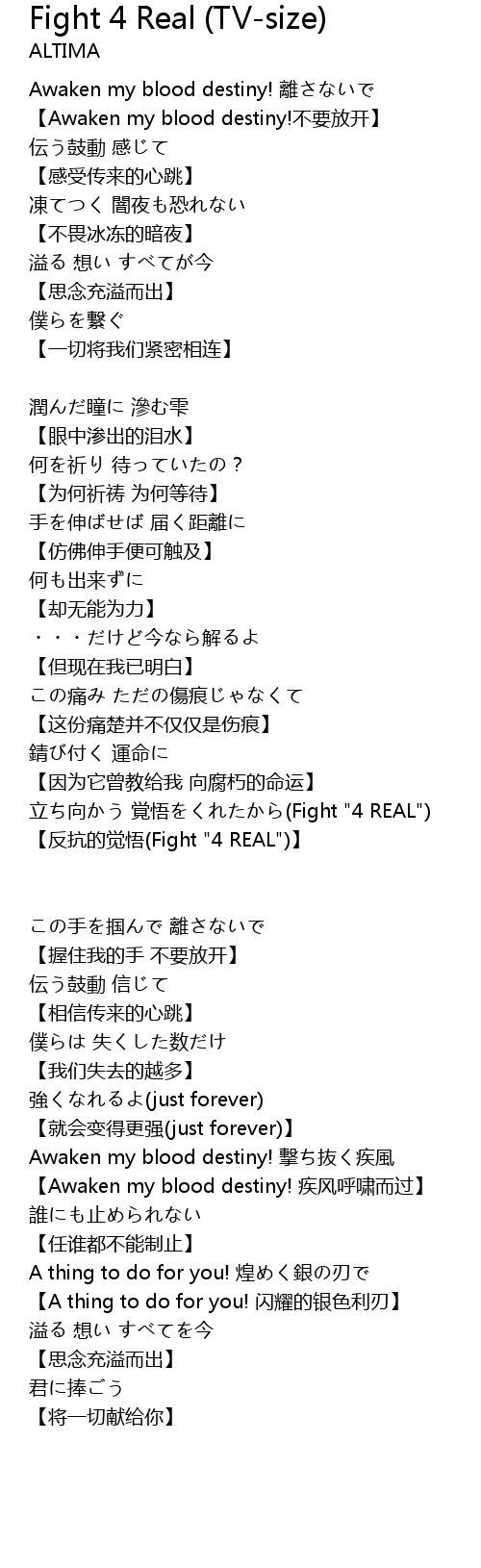 | 【反抗的觉悟(Fight "4 REAL")】 | |