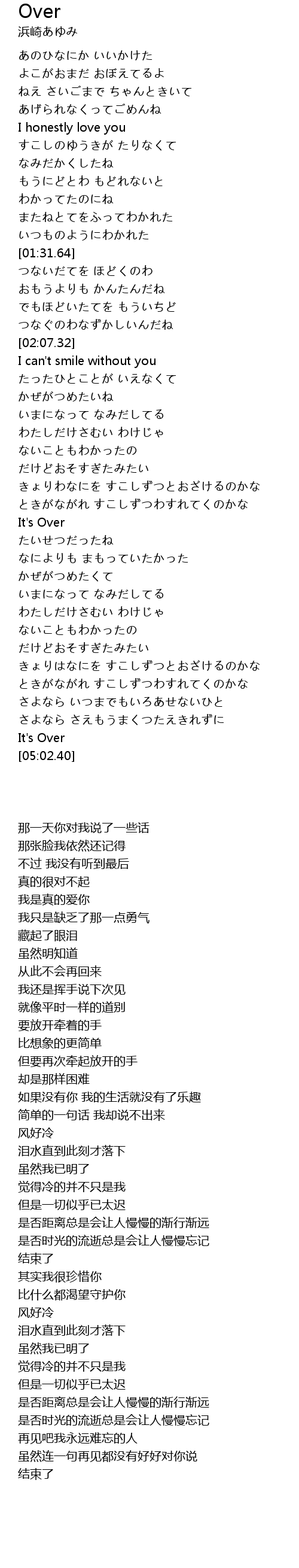 | [05:01.54] | It' s Over |