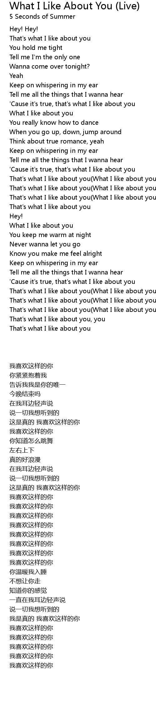What I Like About You (Live) Lyrics